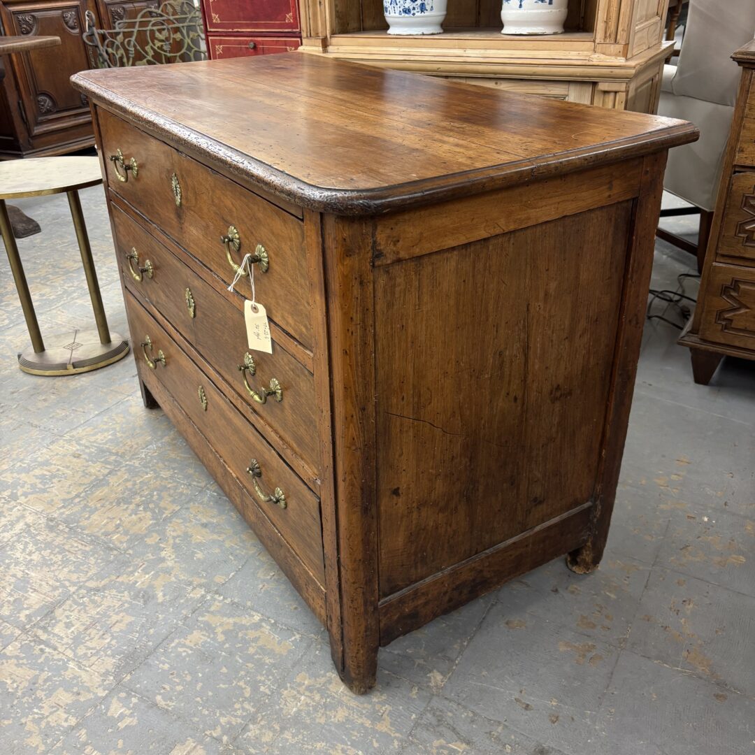 French walnut 3-drawer chest with brass hardware.