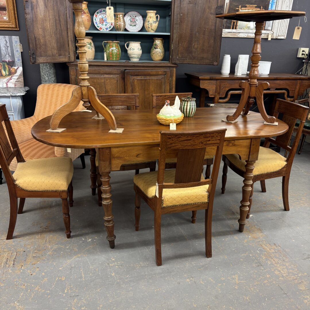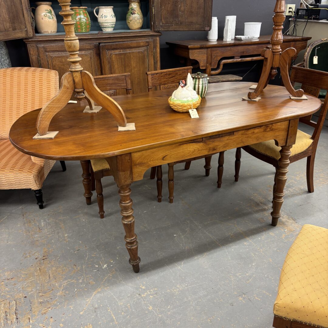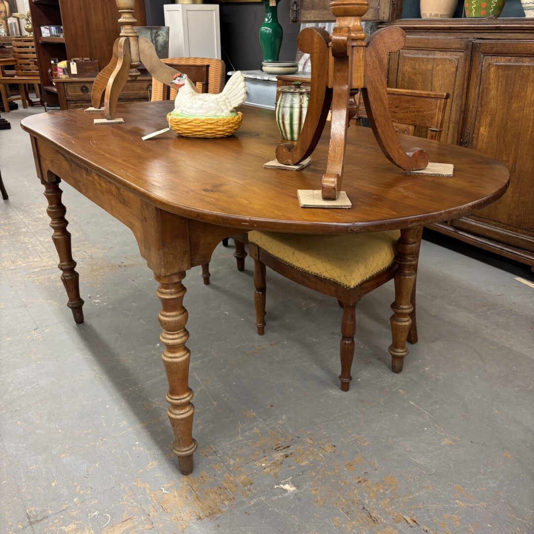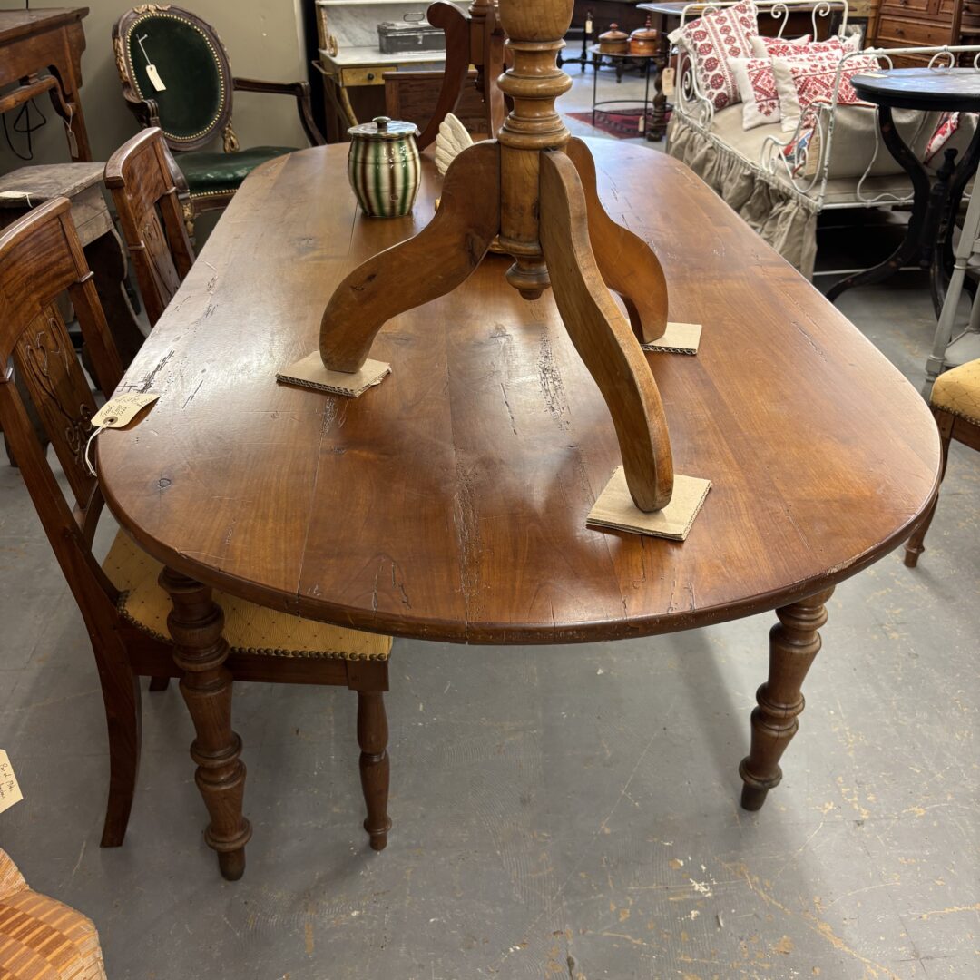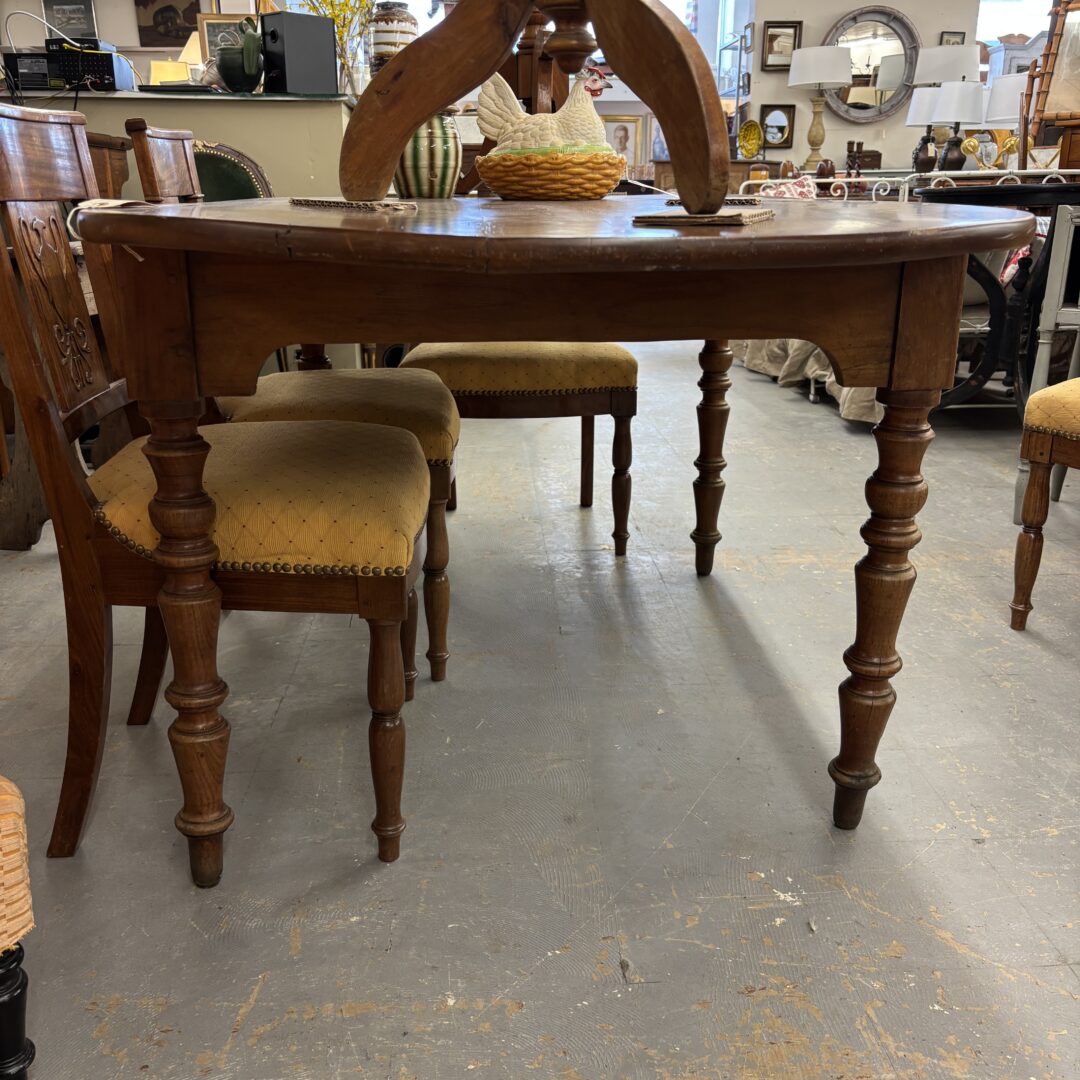 A petite 19th century, French cherry “d-end” dining table with turned legs.
